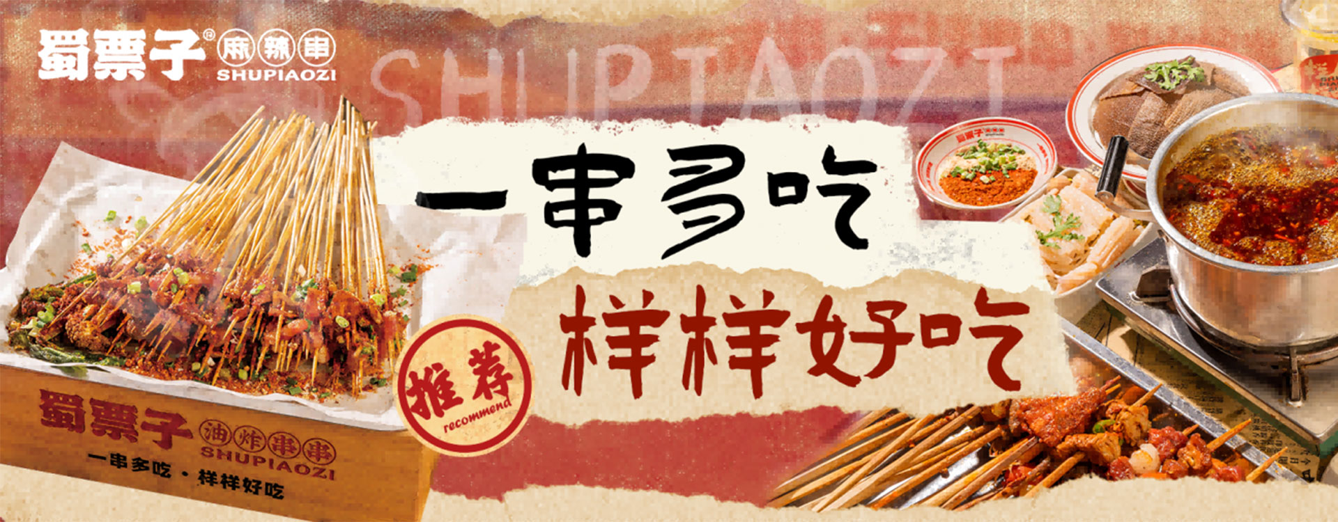 “蜀票子麻辣串”起源于1978年四川乐山,发扬地道蜀都老味,成都蜀票子餐饮有限公司紧跟市场需求,融合当代年轻人口味喜好,创新“一串多吃”的多业态模式,集四川特色油卤串、麻辣串、炸串于一体,契合快节奏生活、即时性消费,坐下就吃,拿上就走,覆盖一人食、聚会、青夜多场景社交需求,打造高成瘾性刚需品牌,深受当地年轻人追摔。